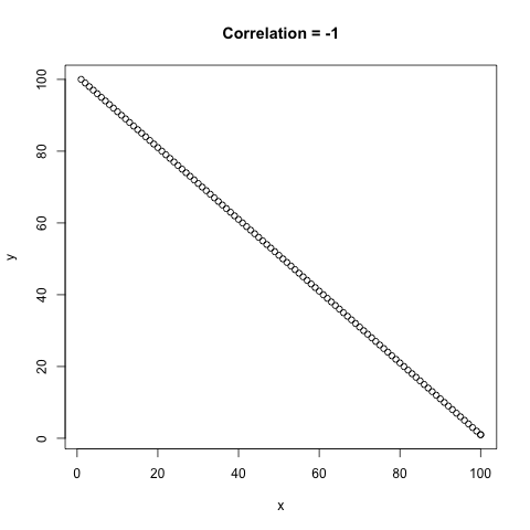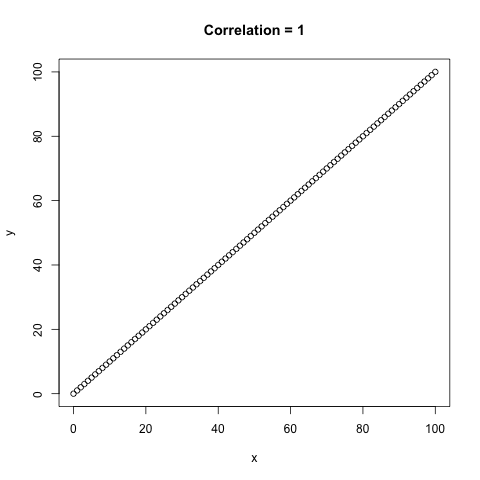 Below is an example of the different correlation values that can occur, \(\rho\) is between -1 and 1 where both -1 and 1 are perfect correlation between the